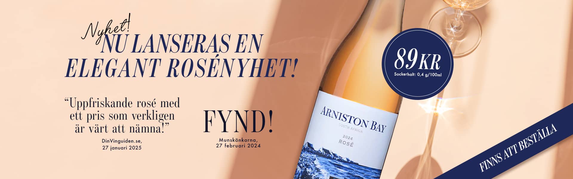 Arniston Bay Rosé bjuder in till långa kvällar, svala andetag och enkla njutningar – till ett pris av 89 SEK. Finns på Sydafrikanska hyllan på ditt Systembolag eller att beställa.